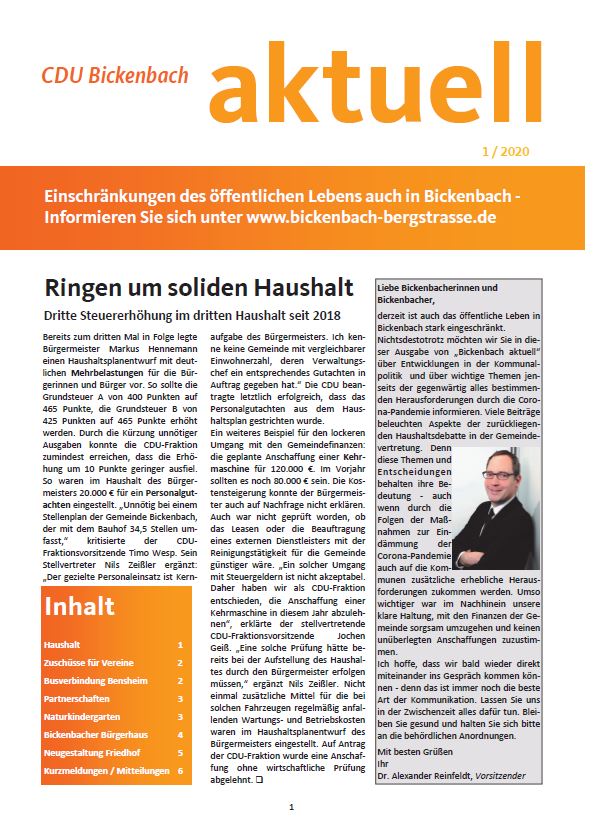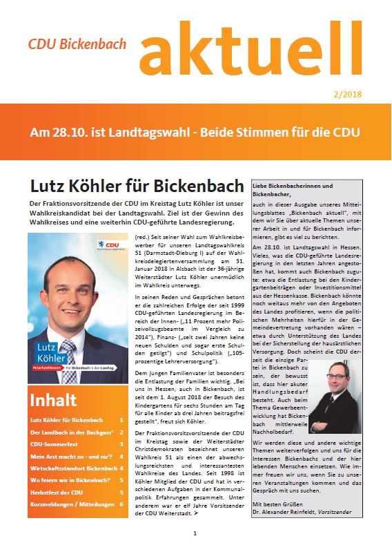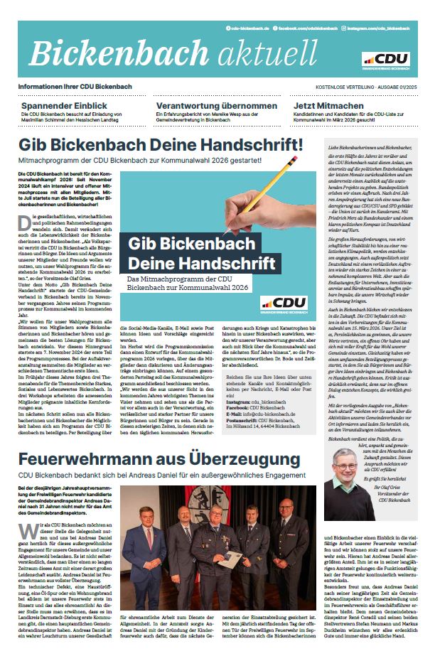 Lesen Sie hier die aktuellen Ausgaben unserer CDU-Zeitung „Bickenbach aktuell“.
