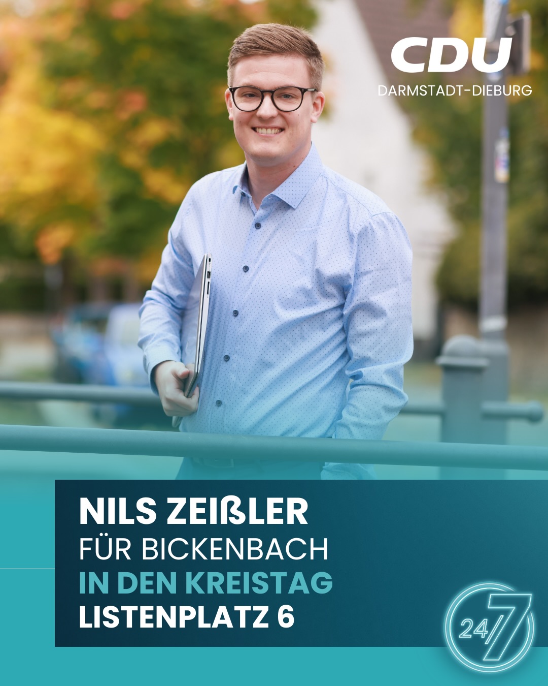 Die CDU Bickenbach hat einen neuen Vorsitzenden: Bei der Mitgliederversammlung im Rathaus am 7. November wählten die anwesenden Mitglieder den 30-jährigen Nils Zeißler einstimmig an die Spitze der CDU Bickenbach. Zeißler, der seit zehn Jahren kommunalpolitisch aktiv ist und derzeit das Amt des Vorsitzenden der Gemeindevertretung ausführt, folgt auf Olaf Gries, der den Vorsitz nach zwei Jahren abgab.